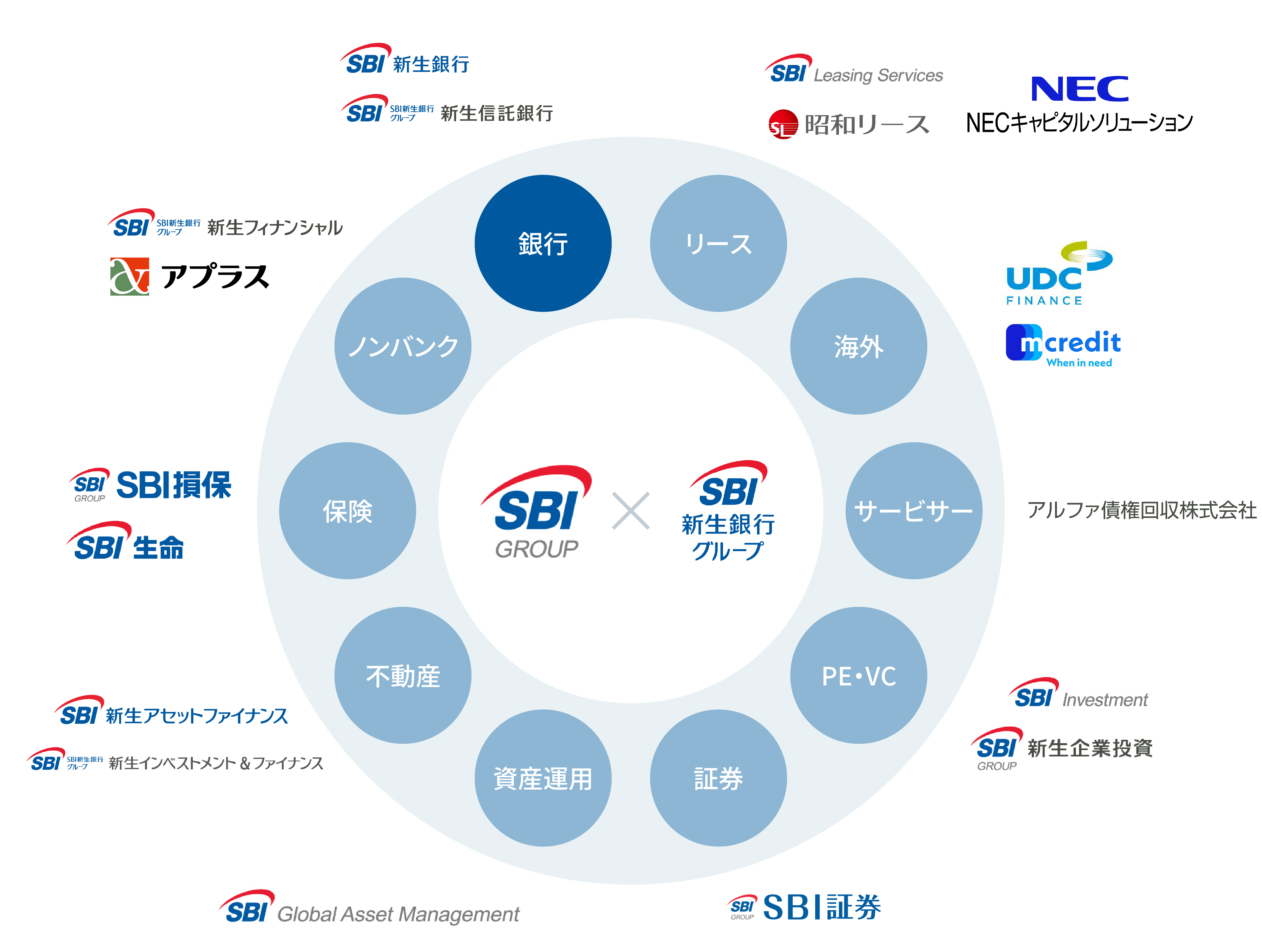 SBI新生銀行グループは、銀行とノンバンクの機能を併せ持つハイブリッドな総合金融グループです。